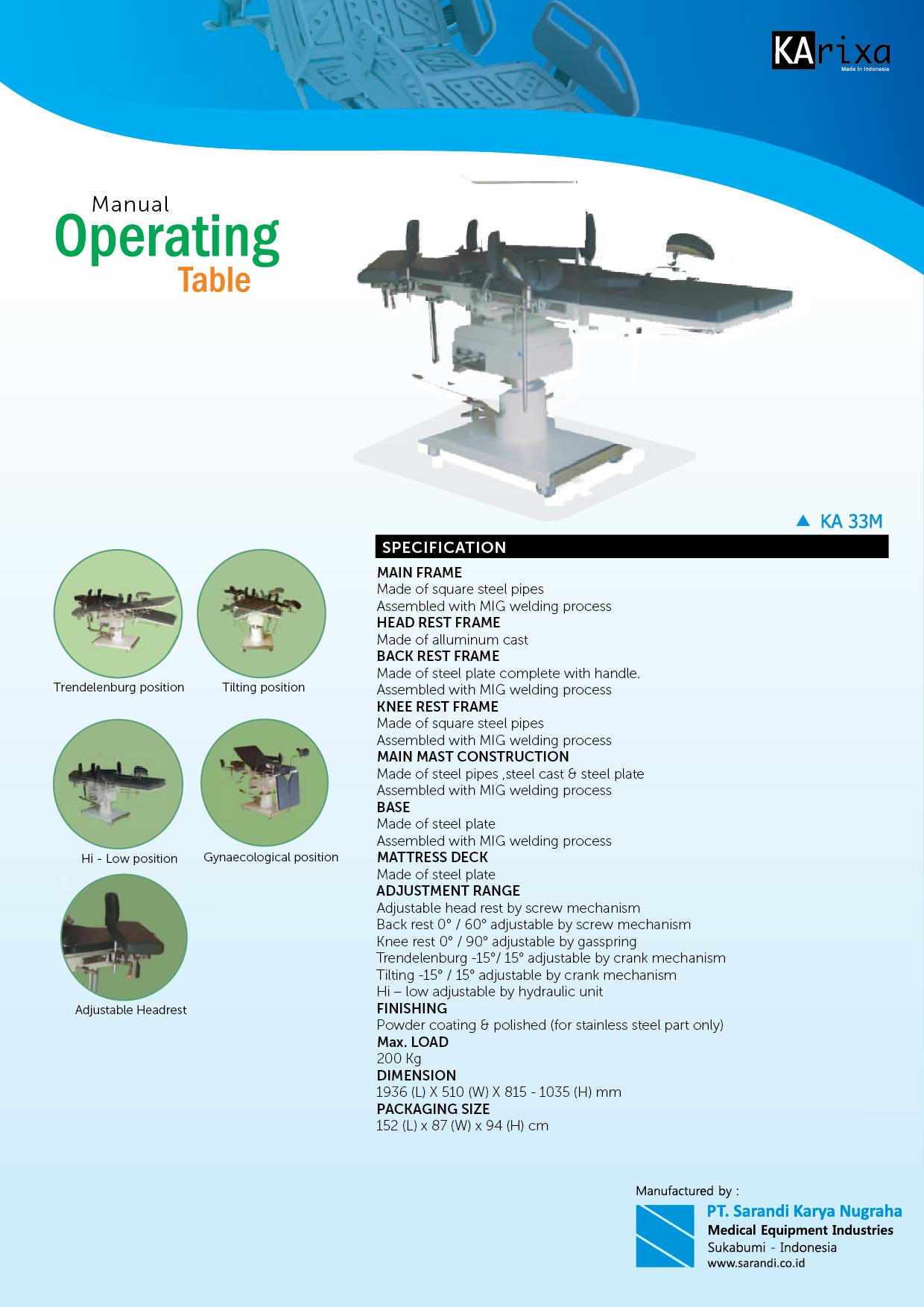 Operating Table Manual – KA 33M